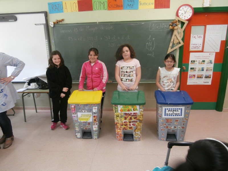 Por ello hemos vuelto a redecorarlos con elementos más visibles y hemos vuelto también a ir por las aulas para recordarles a todos dónde debemos tirar cada uno de estos residuos.
